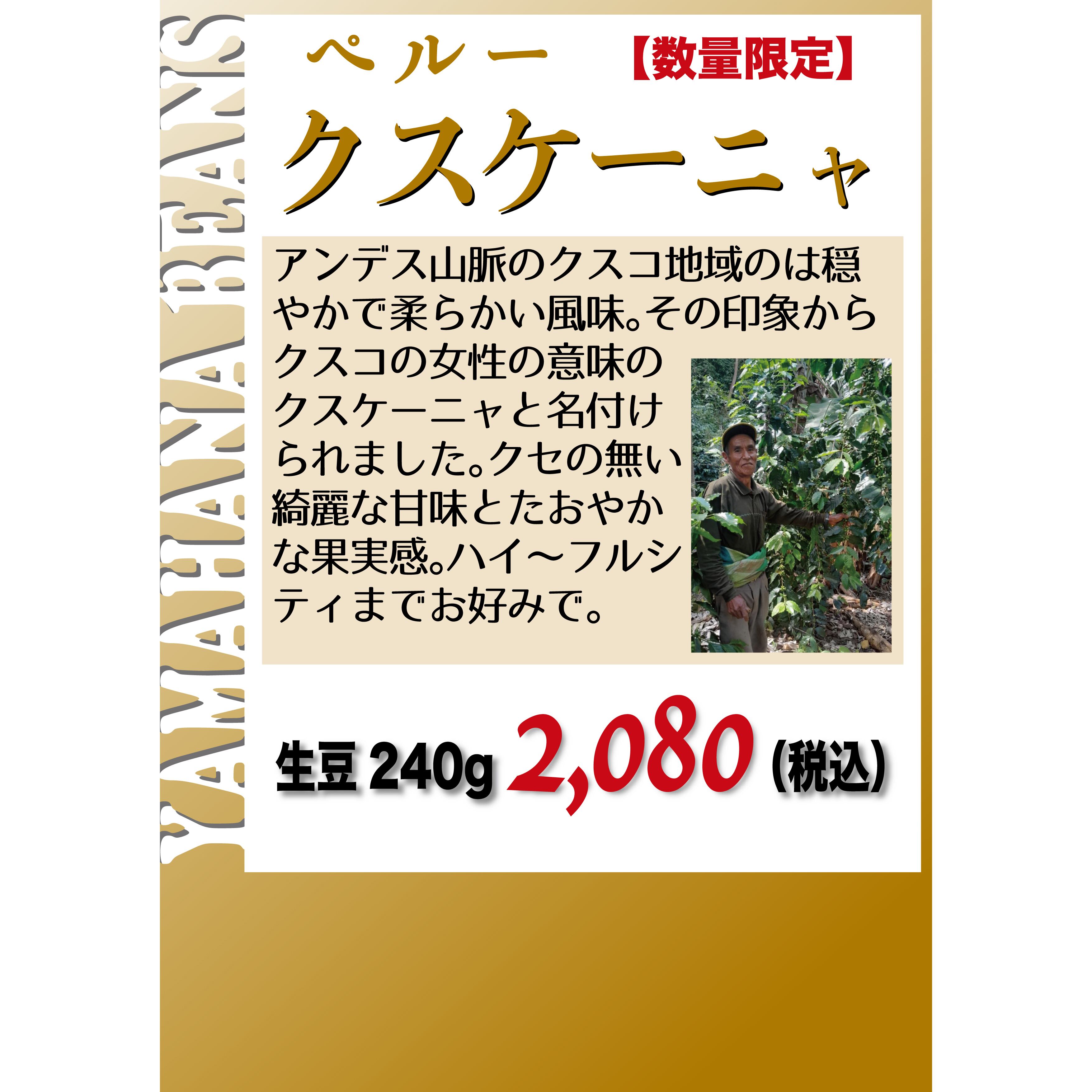 【数量限定】ペルー クスケーニャ G-1 生豆240gを焙煎